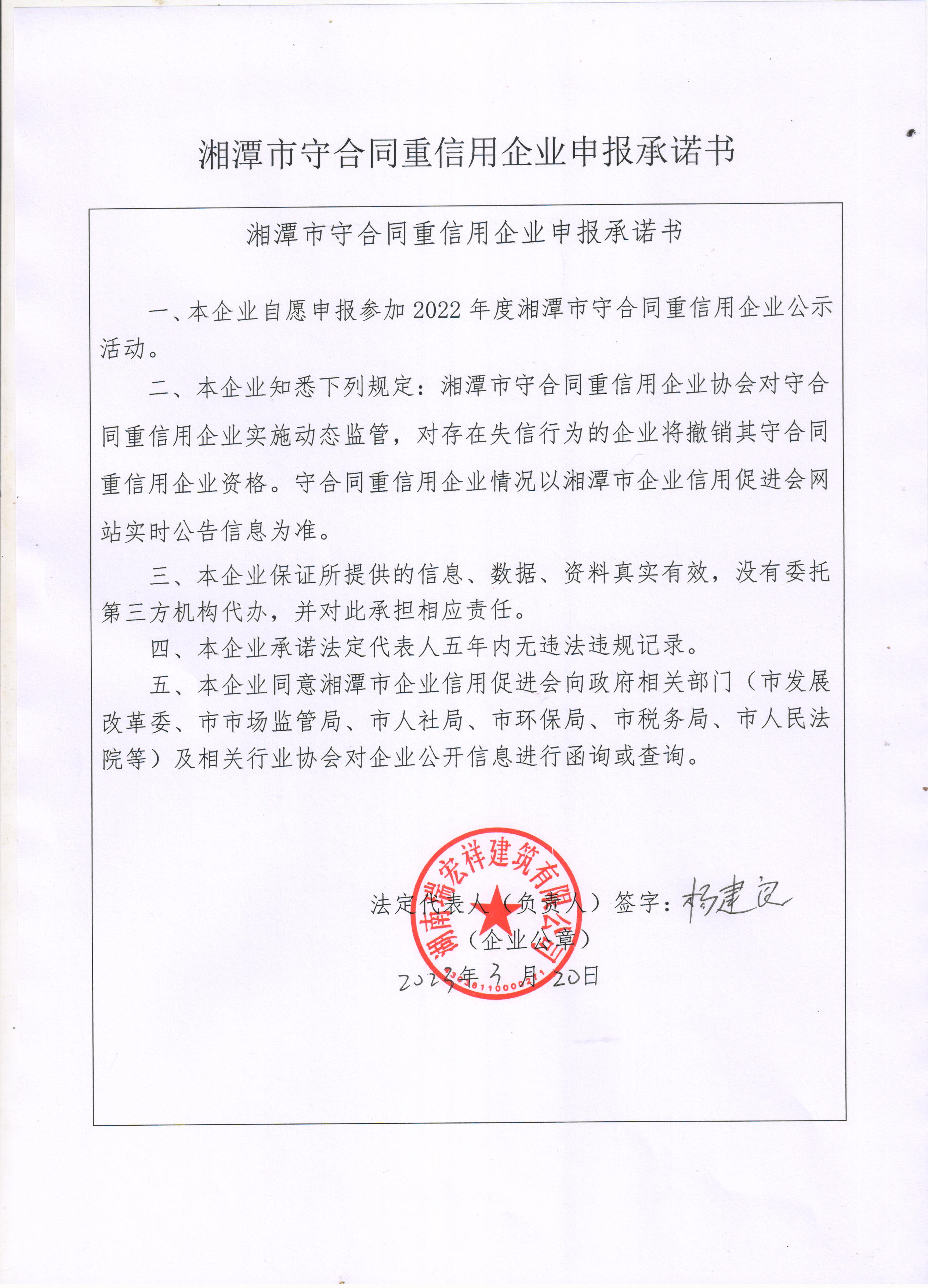 本企業(yè)根據(jù)《湘潭市守合同重信用企業(yè)申報規(guī)定》等編制 2022 年度企業(yè)信用報告書,并保證本報告書內(nèi)容真實(shí)、準(zhǔn)確、完整。
