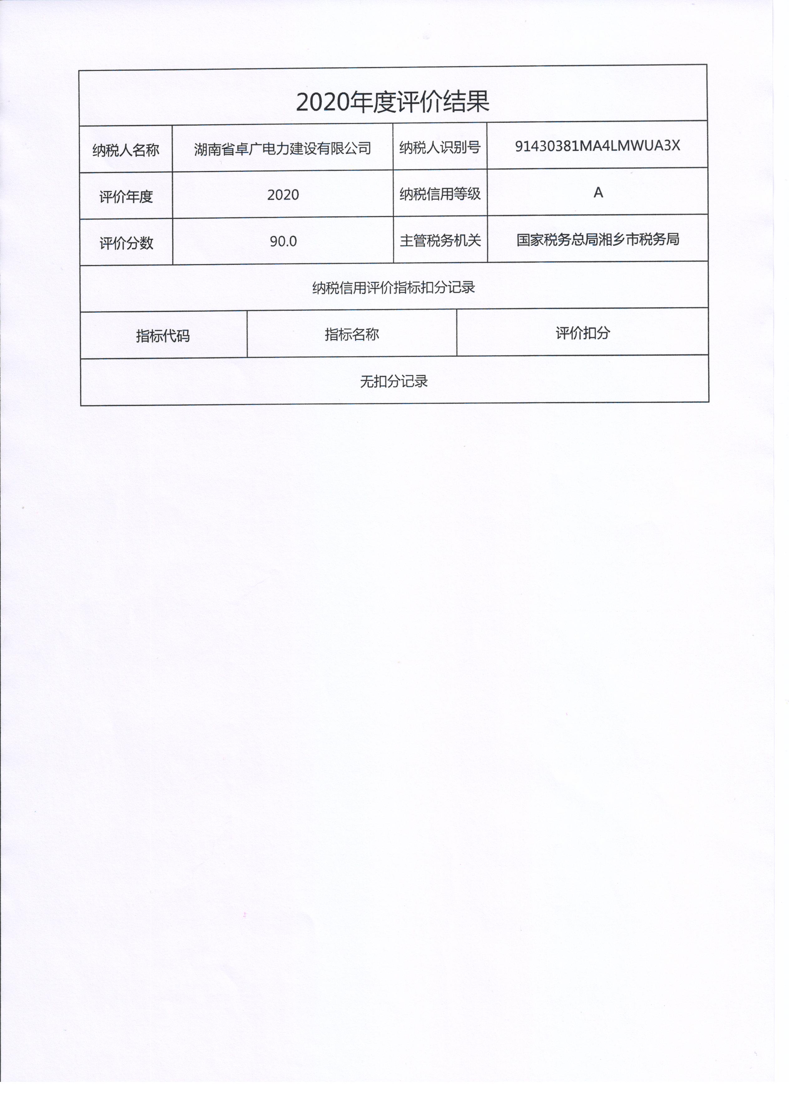 企業(yè)納稅信用等級報告:
