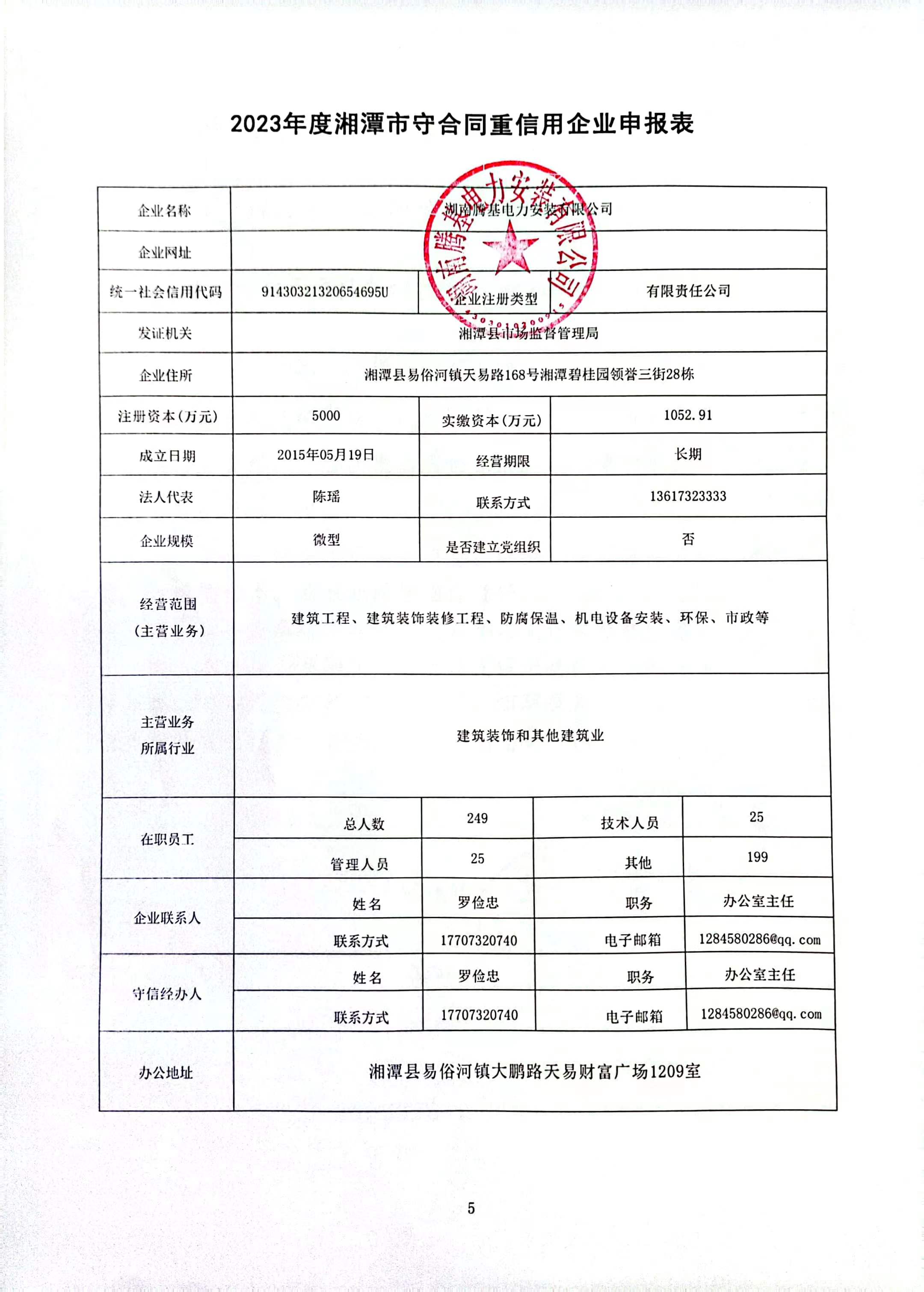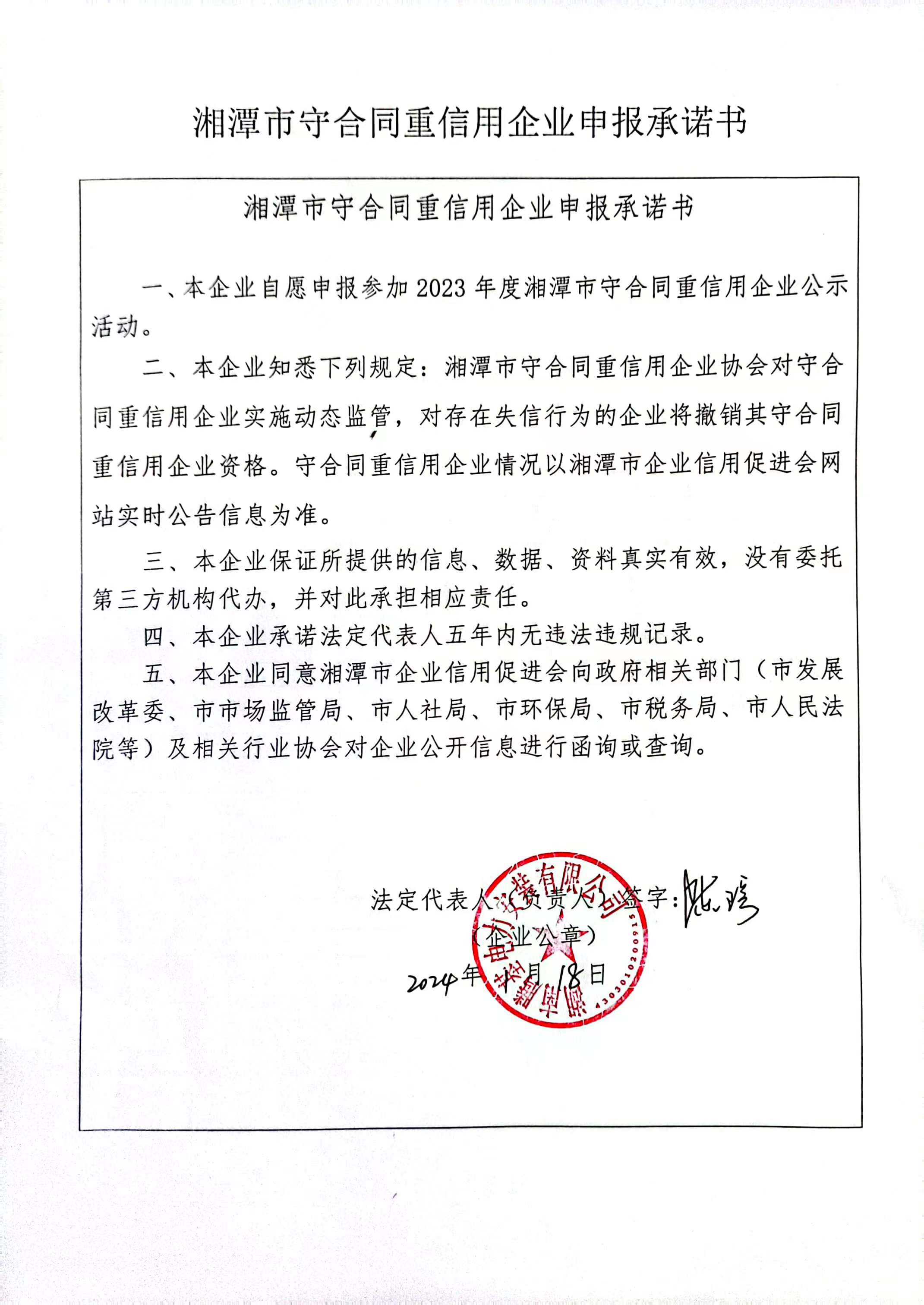 本企業(yè)根據(jù)《湘潭市守合同重信用企業(yè)申報規(guī)定》等編制 2023 年度企業(yè)信用報告書,并保證本報告書內(nèi)容真實、準確、完整。
