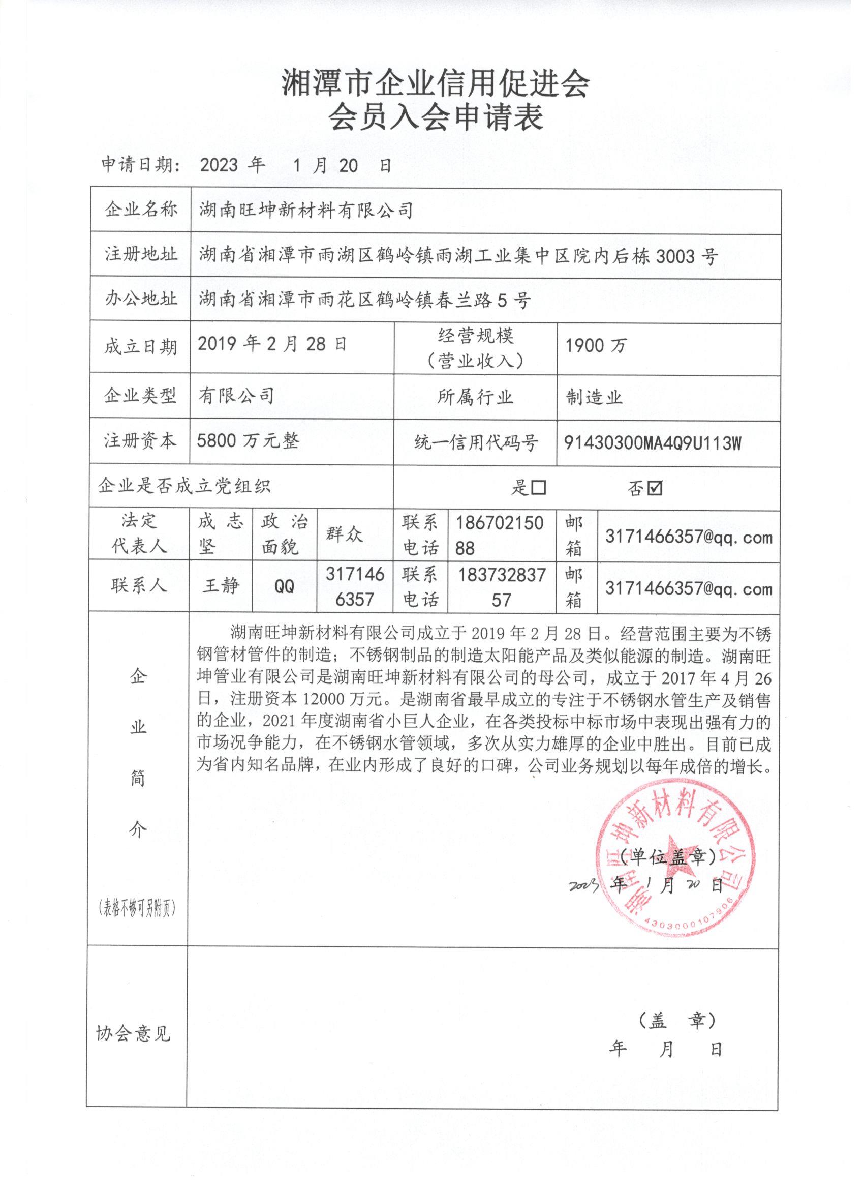 湖南旺坤新材料有限公司2023年度信用報告 2023 已發(fā)布
