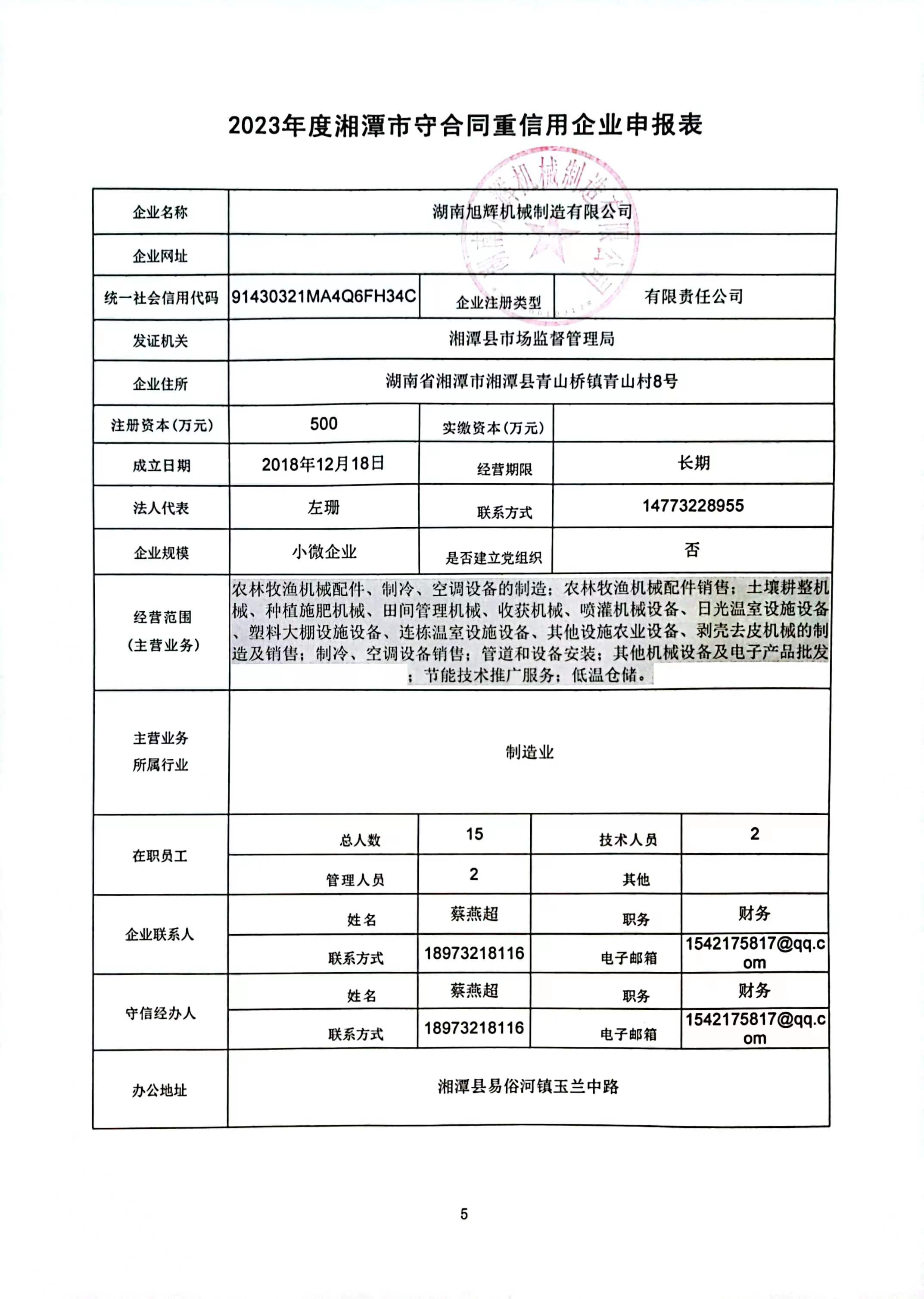 本企業(yè)根據《湘潭市守合同重信用企業(yè)申報規(guī)定》等編制 2023 年度企業(yè)信用報告書,并保證本報告書內容真實、準確、完整。