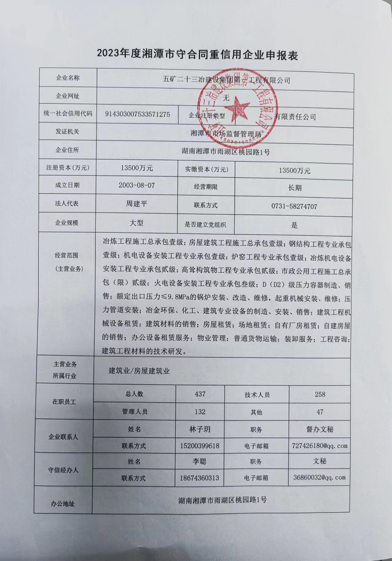 本企業(yè)根據(jù)《湘潭市守合同重信用企業(yè)申報(bào)規(guī)定》等編制 2023 年度企業(yè)信用報(bào)告書(shū),并保證本報(bào)告書(shū)內(nèi)容真實(shí)、準(zhǔn)確、完整。