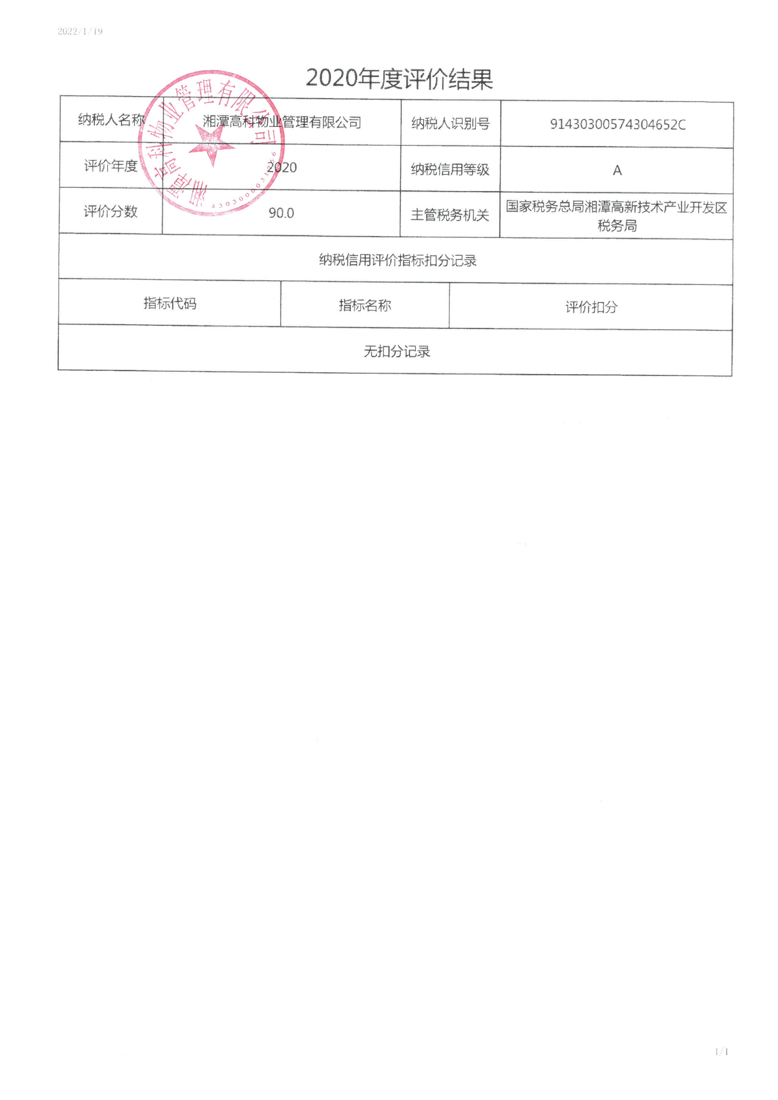 企業(yè)納稅信用等級報告: