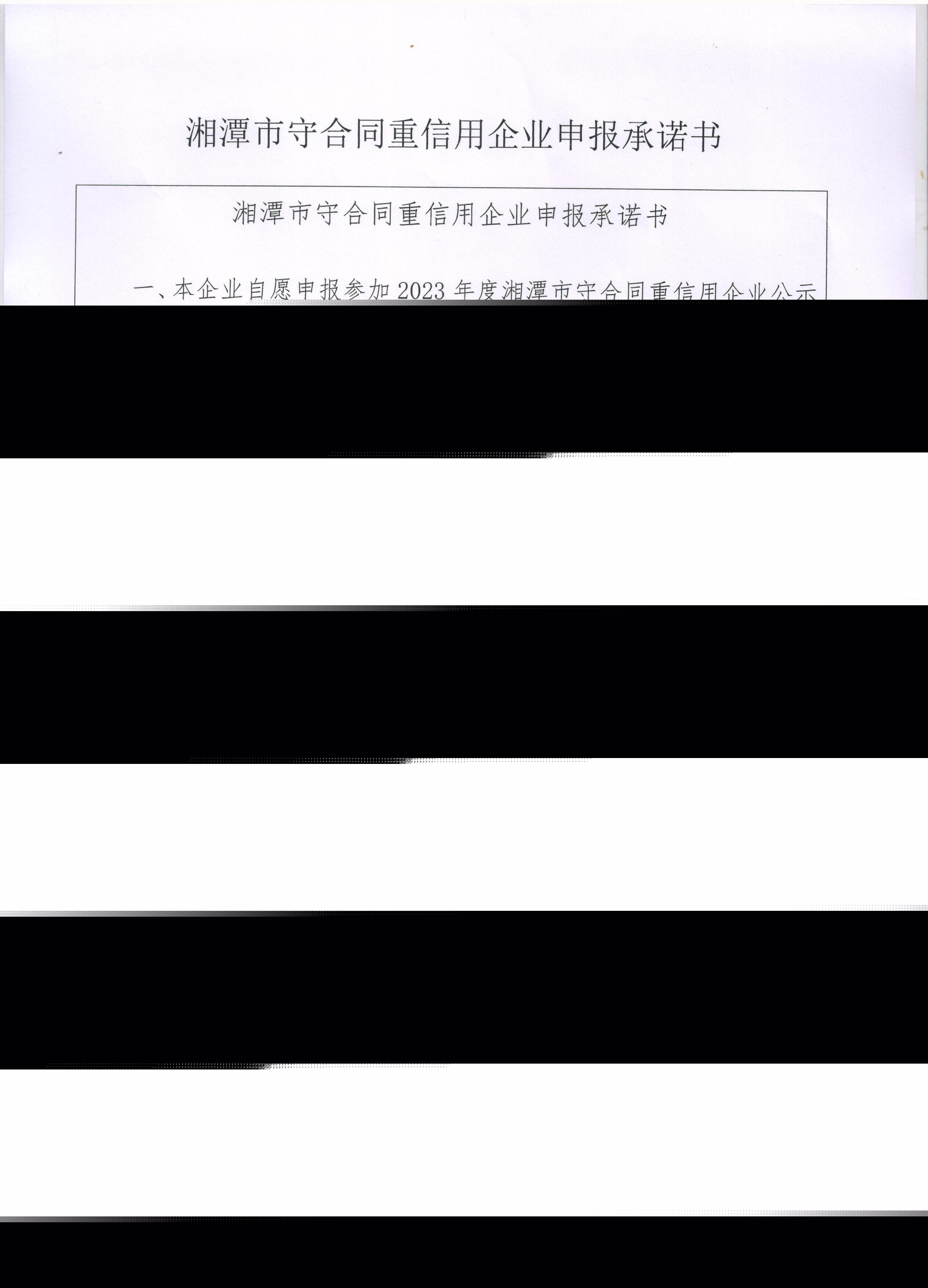 本企業(yè)根據(jù)《湘潭市守合同重信用企業(yè)申報規(guī)定》等編制 2023 年度企業(yè)信用報告書,并保證本報告書內(nèi)容真實、準(zhǔn)確、完整。