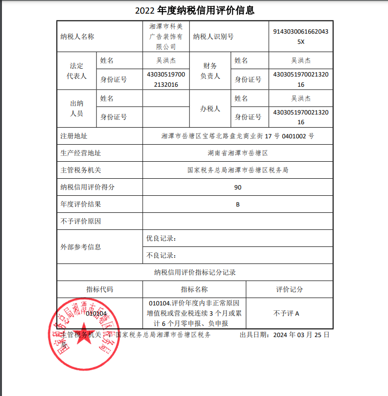 企業(yè)納稅信用等級報(bào)告: 4e3962ab12a1229955adf0feeadaddd.png