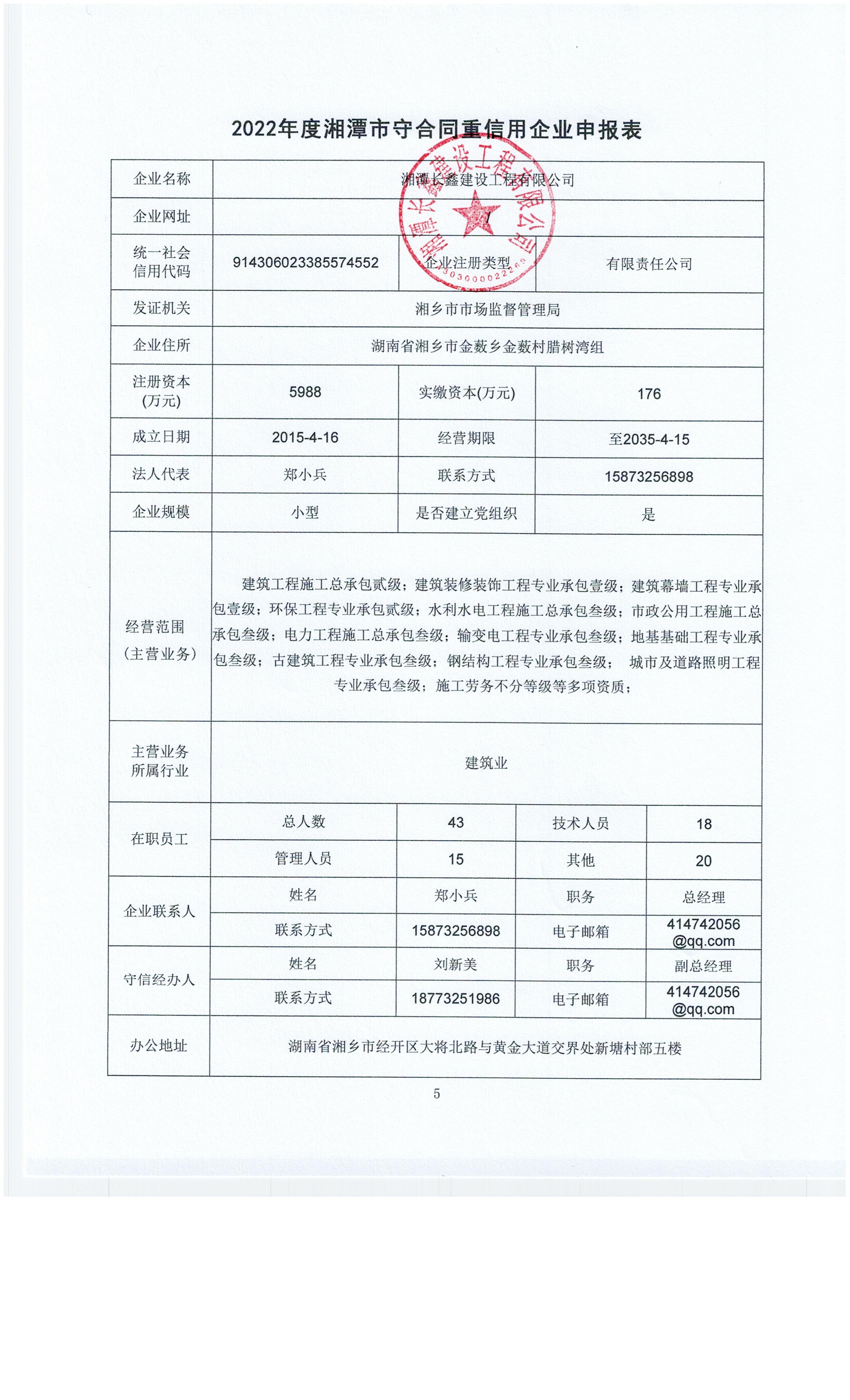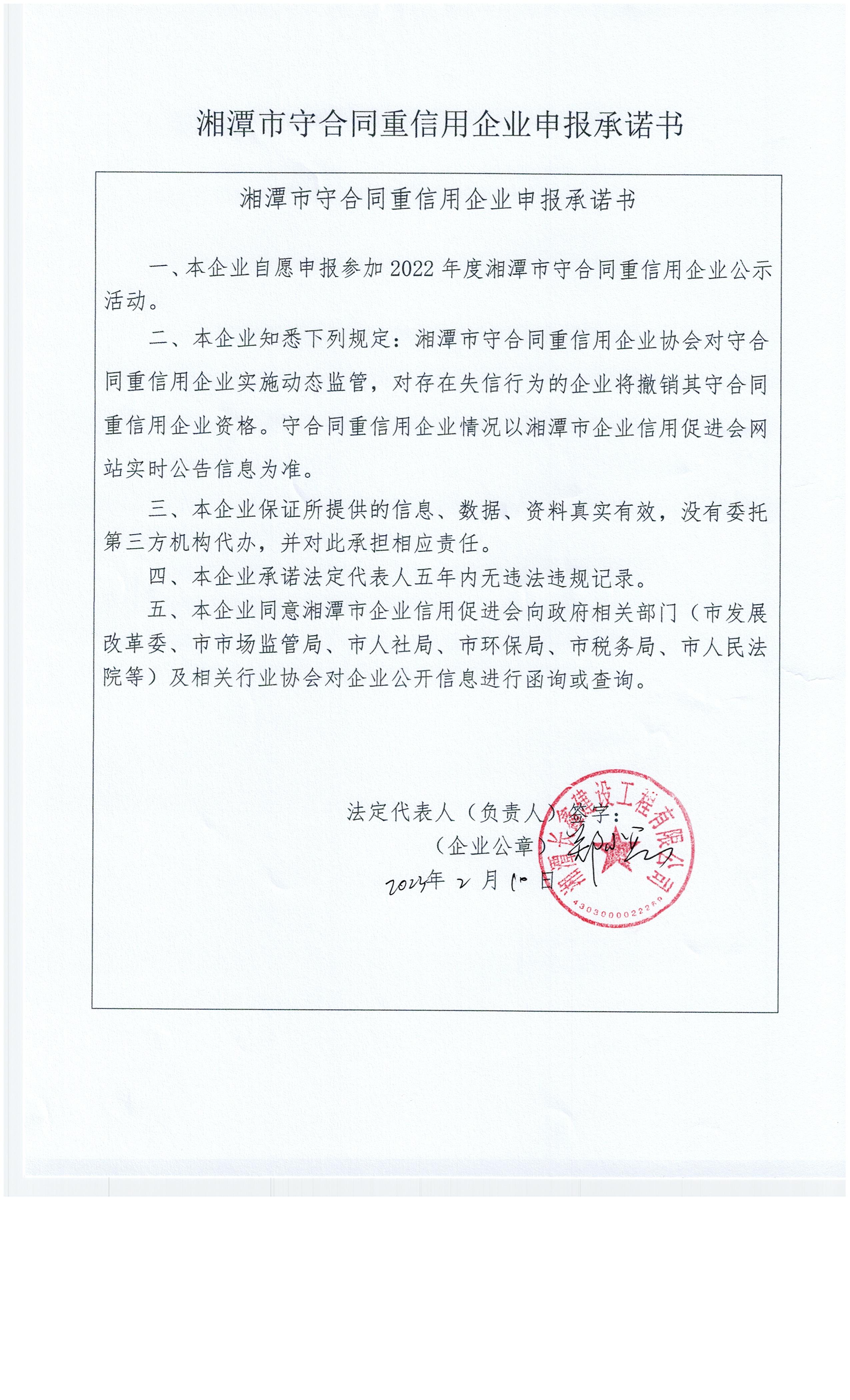 本企業(yè)根據(jù)《湘潭市守合同重信用企業(yè)申報(bào)規(guī)定》等編制 2022 年度企業(yè)信用報(bào)告書,并保證本報(bào)告書內(nèi)容真實(shí)、準(zhǔn)確、完整。